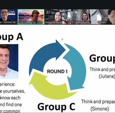 O segundo dia do ToT foi marcado por muita prática e colaboração. Scott Chiverton abriu a manhã compartilhando oportunidades e recursos da RELO para professores de inglês, seguido por dinâmicas conduzidas por Thiago que prepararam o grupo para as microaulas do dia.