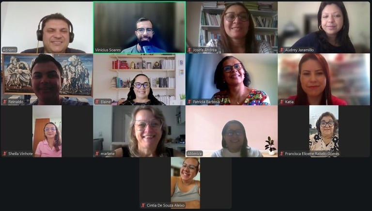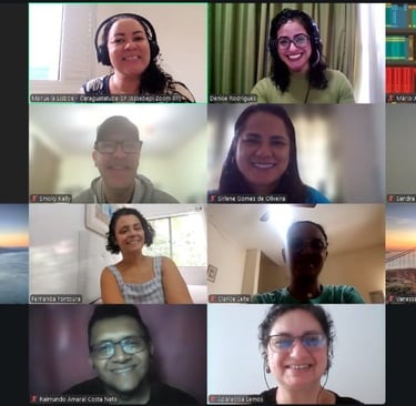 Participants presented their lessons under the guidance of Cleide, Raimundo, and Thiago, providing online support, engaging in active teaching methodologies and exploring the Canvas platform.