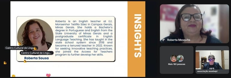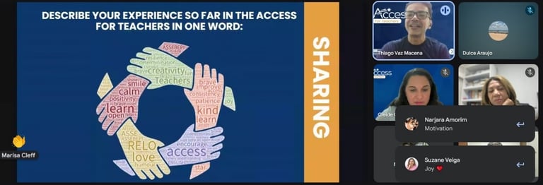 Após o início oficial do programa em 30 de setembro de 2025, as 16 turmas do Access for Teachers realizaram sua cerimônia de abertura, 9 de dezembro de 2025 reunindo mais de 190 participantes em formato online. Na ocasião, a equipe do Escritório de Língua Inglesa e da ASSEBEPI deu as boas-vindas aos professores de diferentes regiões do Brasil, compartilhando mensagens de incentivo, compromisso com a formação docente e valorização do ensino de língua inglesa na educação pública.