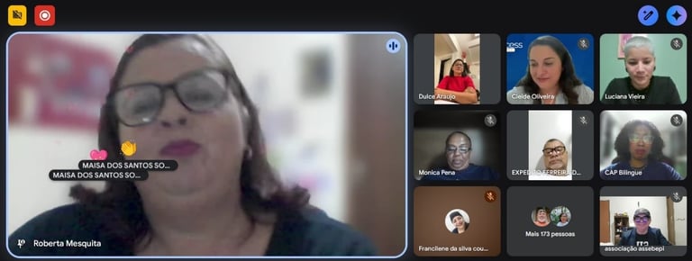 Mesmo com alguns desafios de conexão, o entusiasmo foi unânime: “Todos participaram!”, “Foi excelente!”, “As atividades das cores e objetos foram a cereja do bolo!”.